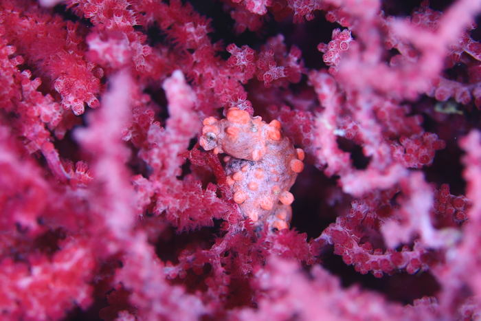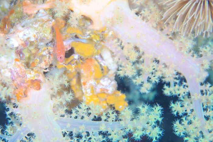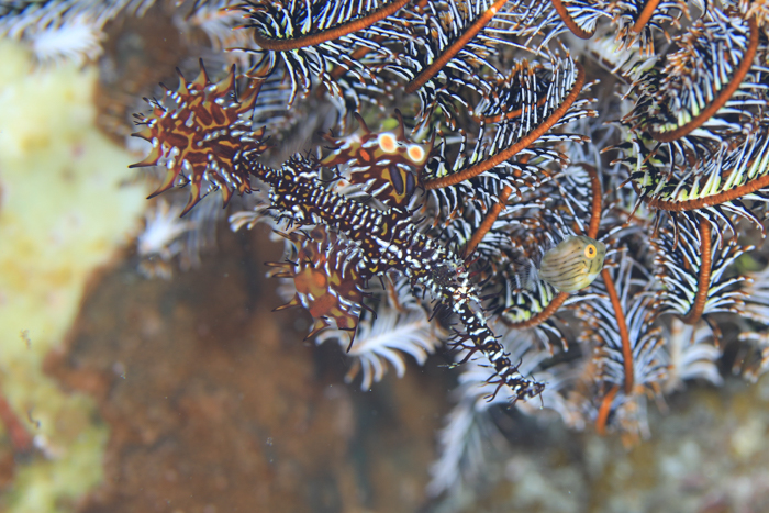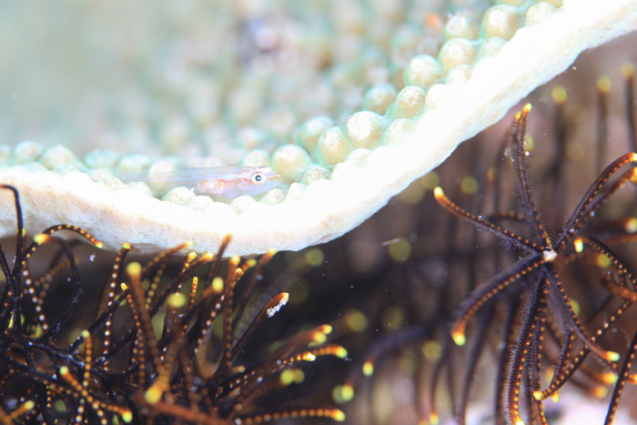 アカスジウミタケハゼとウミシダ玉ボケ。