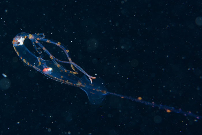 普段のダイビングでは見ることのできない魅惑の浮遊系生物たちを観察するダイビングです。基本的に着底はせず水面~水深8mほどの表層で見られる浮遊系生物を観察します。