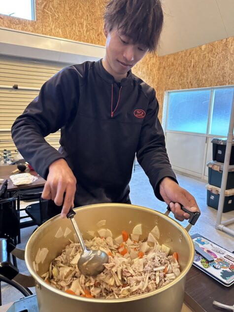 寒く冷えた体を温めるためにスタッフで豚汁うどんを作ってます!