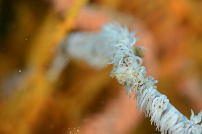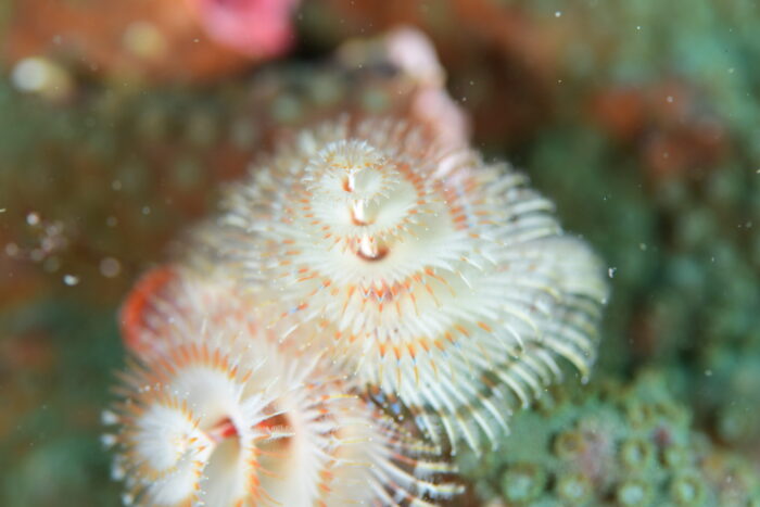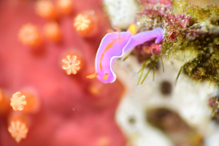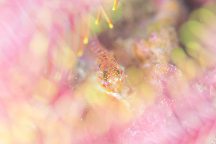 ウミシダの赤紫と先っぽの黄色のボケボケ。こんな写真撮りたい!!!