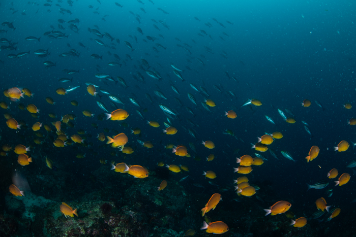 イサキとコガネスズメダイのコラボ