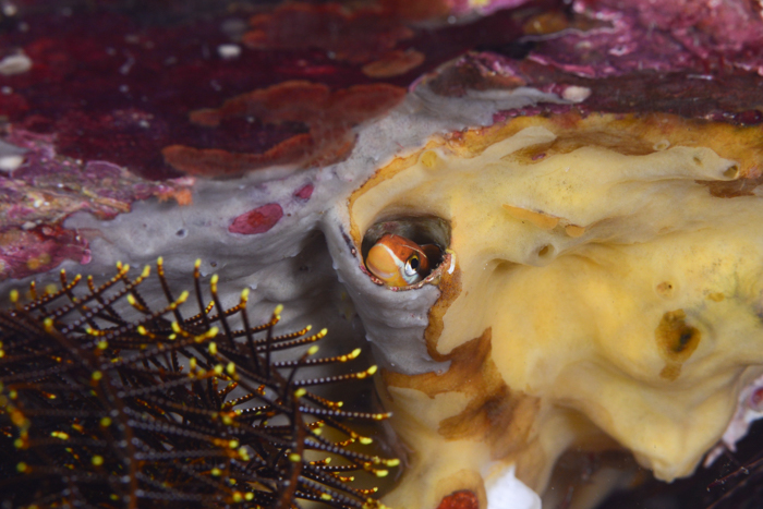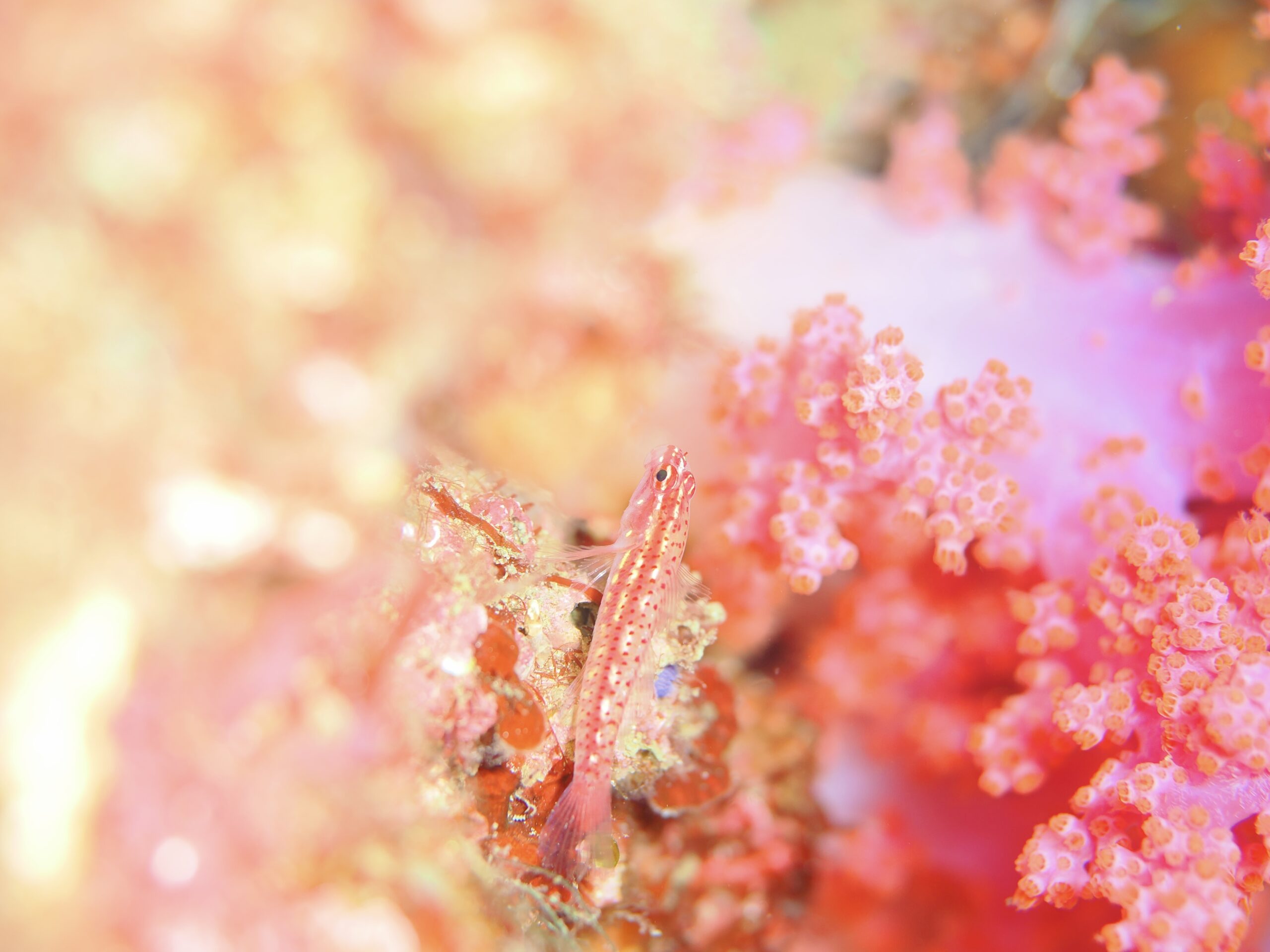ソフトコーラルに囲まれるコジカイソハゼ