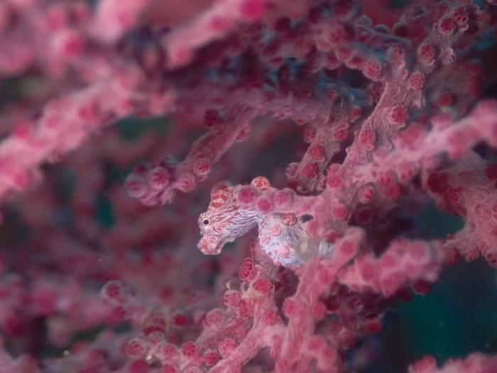 ポントニデス・マルディブエンシス 隣のサンゴにはオスも。